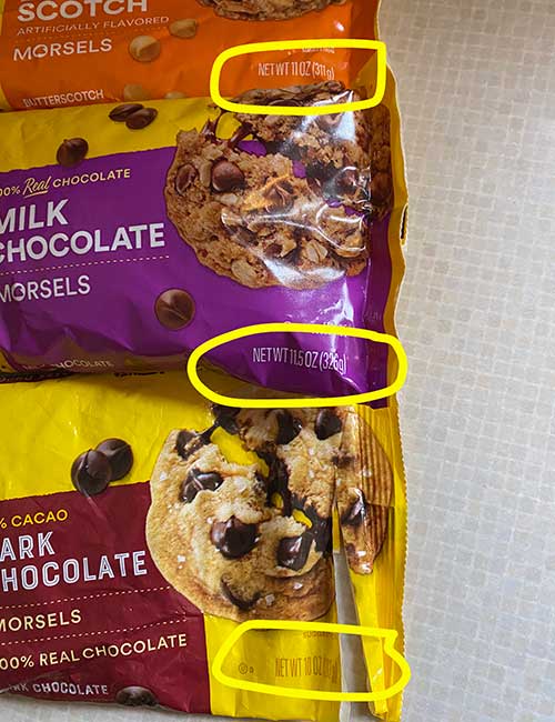 Just this week, as I was baking cookies, I became aware of chip shrinkflation.