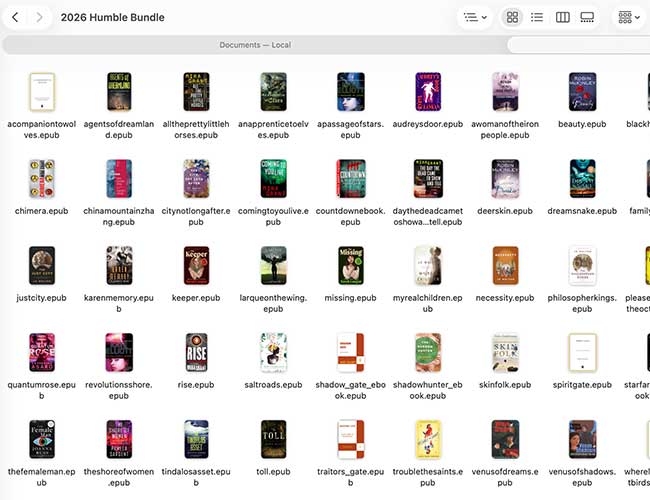Screen grab of a portion of the Humble Bundle — I think it was 65 books but some are novellas. (To clarify, the 67 Humble Bumble is part of my 2026 purchases. Not part of the 97 I mentioned above.)