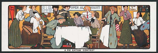 “A Pie Eating Contest” Sandie Wendell Mitchell artist, Library of Congress, I’m not clear if the artwork is from 1909 or that was the date it was added to the LOC collection.