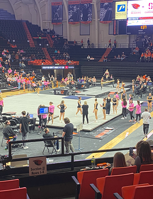 We did our semi-regular visit to Corvallis to watch an NCAA gymnastics meet.