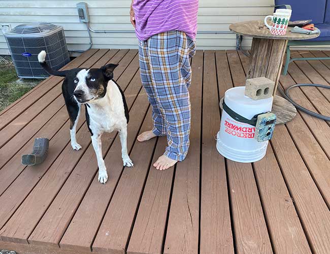 Bucket with trailcam — easy to move around when you have it set up like this.